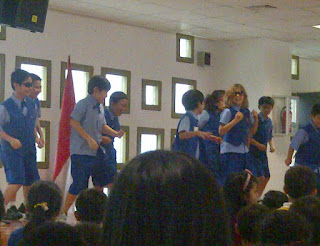 After that, we gathered at the main hall to have fitness jam and to present the performances both schools have prepared in the assembly.